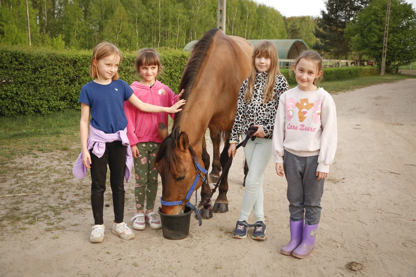 - nauka obycia z końmi, jak np. zakładanie derek, ochraniaczy, kaloszków, masek, wiązanie bezpiecznego węzła